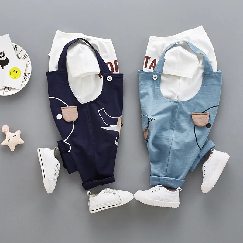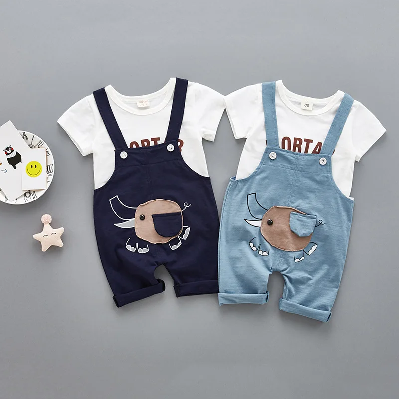 New Fashion Baby Boys Clothes Short Sleeve Top& Suspender 2 PCS Suit For Kids Boy Daily wear Summer Clothing Set 0-24M Outfits